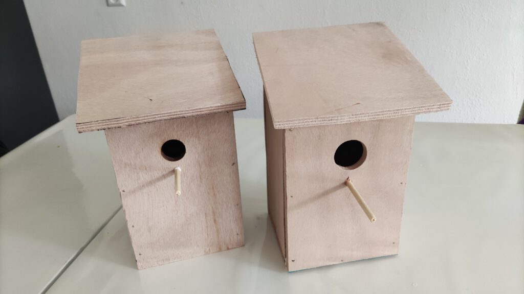 - Open het vogelhuisje zodat je goed bij de achterwand kunt. In dit geval schroeven we het dakje eraf.